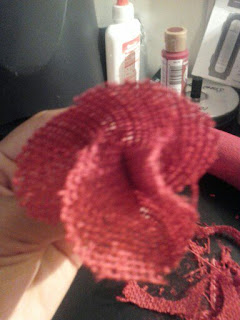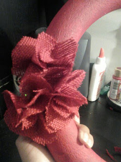 I started making Rosettes and added them to the wreath with my hot glue gun. BTW, I burned myself and had a blistered index finger for 2 days. Ouch:(