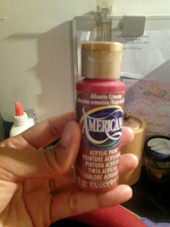 I bought a white styrofoam wreath and immediately started adding burlap rosettes to it and realized that you could see the white through the burlap. So, I was trying to figure out a way to cover up the white so I was searching and found a blog where a woman had spray painted her wreath red so when she added the rosettes you couldn’t see white. I can’t remember what blog it was but thanks so much!!!! So, I realized I had some red paint from when I painted my “L” on my fall wreath. I started painting it and I only had a really tiny paint brush so it took forever . I painted it and let it dry and I decided to finish it the next day.